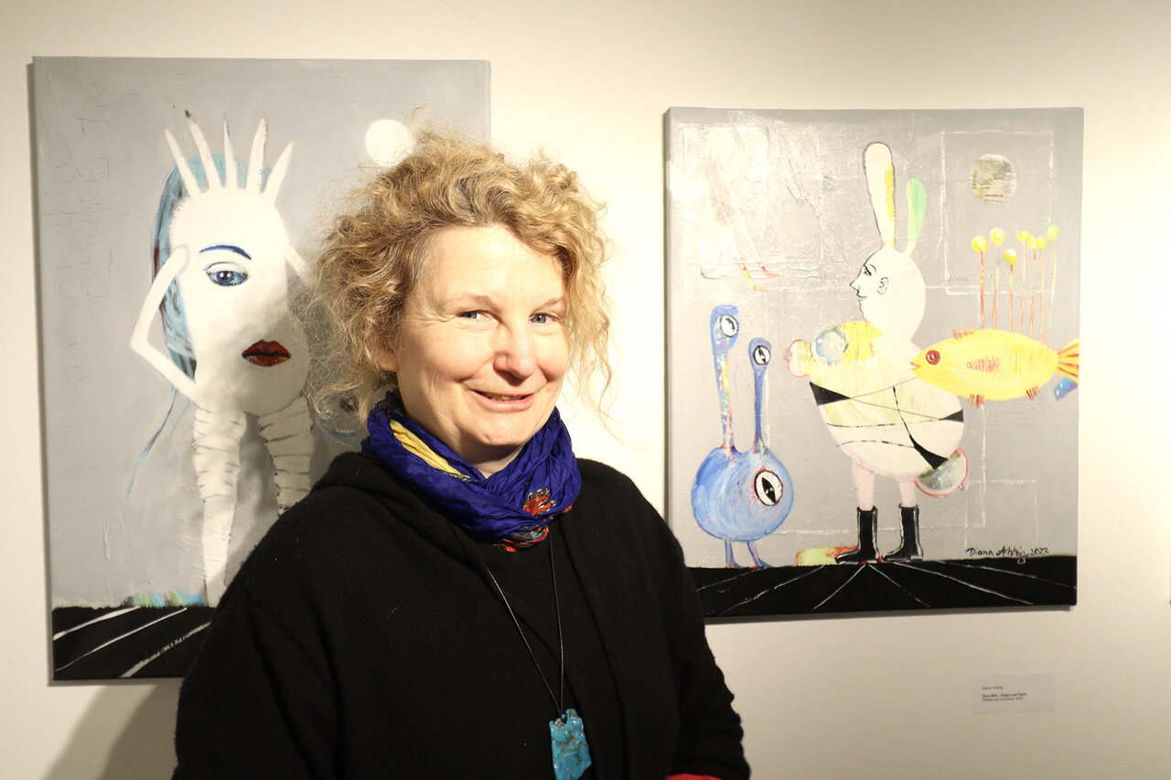 „Erleben Sie Diana Achtzigs Einzelausstellung Mystische Fische in der Berolina Galerie Berlin. Gezeigt werden Tuschearbeiten auf Papier und Ölgemälde auf Leinwand, die imaginäre Fisch-, Eulen-, Vogel- und Katzenfiguren vereinen. Hier trifft die Neue Leipziger Schule auf eine faszinierende Tiefsee-Ästhetik.“