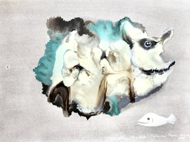 Diana Achtzig (Neue Leipziger Schule): Teilungsfische, Tusche auf Papier, Papierarbeit, 42 x 56 cm, 2025 Leipzig. Tusche Malerei Zeichnungen Originale Kunst kaufen!
