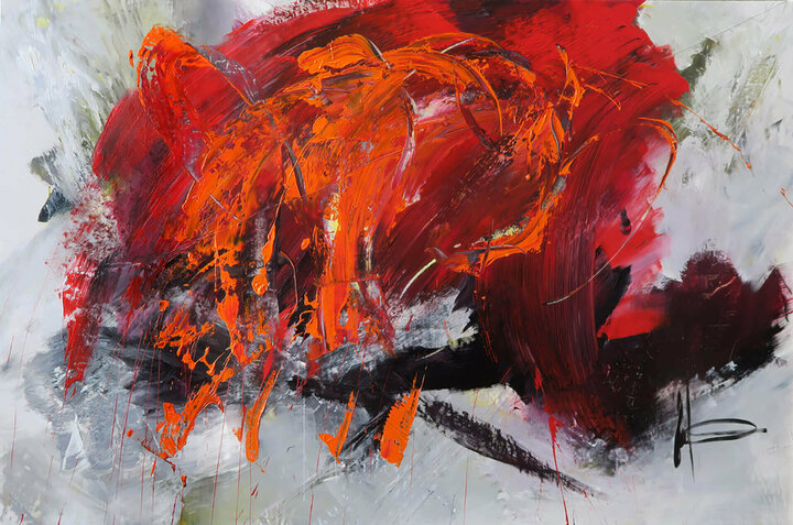 EVA KAISER - venture in - 130 x 205 - Mischtechnik auf Leinwand. Eva Kaiser, abstrakte Malerei mit expressiver Gestik und intensiver Farbigkeit, geprägt von Aktionismus und innerer Dynamik.